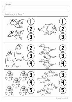 Contamos e coloreamos o número de dinosauros que hai. Coloreamos.